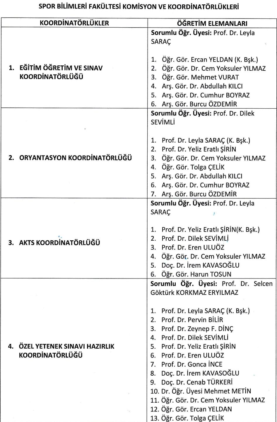Fakülte Akademik Komisyon ve Koordinatörlükleri